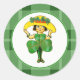 Pegatina Redonda El Viejo Pequeño Chica Irlandés del Día de San Pat