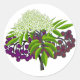 Una rama de la ancianería con la delicada flor blanca, hojas verdes y bayas azul-violeta oscuro. Dibujo digital
