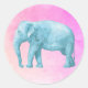 Pegatina Redonda Elefante azul claro sobre acuarelas rosadas oníric