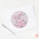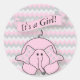 Pegatina Redonda Elefante bebé de Chevron rosa y gris