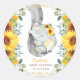 Pegatina Redonda Elefante bebé lindo y girasoles rusos de boho
