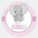 Pegatina Redonda Elefante bebé (rosa) Es un Chica