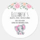 Pegatina Redonda Elefante bebé rosa y Rosas en la frontera