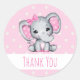 Pegatina Redonda Elefante bebé rosado con polka oidos gracias