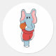 Pegatina Redonda Elefante como jugador de baloncesto con baloncesto