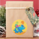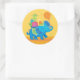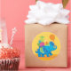 Pegatina Redonda Elefante de cumpleaños con globos y presenta Pegat