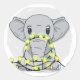 Pegatina Redonda elefante de navidades cortos envuelto en luces
