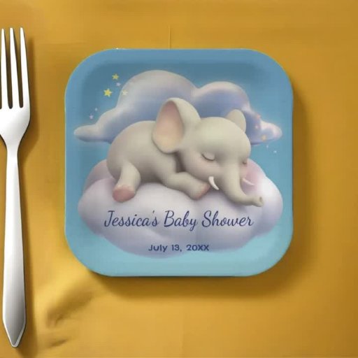 Un elefante bebé duerme en las nubes para su ducha de bebé.