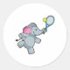 Pegatina Redonda Elefante en el tenis con raqueta de tenis