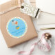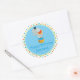 Este pegatina con temática circense presenta con un fondo azul rodeado de una repetición de estrellas rojas, azules, amarillas y verdes. Un lindo elefante de circo se para en una bola de circo en medio del pegatina. Personalice el área de plantilla de la parte inferior con un nombre u otro texto. Este diseño es parte de mi colección de "Fiesta de cumpleaños temática del circo". Imágenes prediseñadas por Prettygrafik design etsy.com/shop/Prettygrafikdesign
