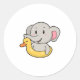 Pegatina Redonda Elefante en Natación con anillo de natación