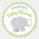 Pegatina Redonda Elefante moderno Baby Shower verde y gris