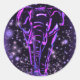Pegatina Redonda Elefante Neon Púrpura Rosa Camina En La Noche De L
