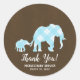 Pegatina Redonda Elefantes Azules Brown Moderno Baby Shower