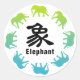 Un diseño de elefantes caminando en círculo con el carácter chino e inglés del "elefante" en el centro.