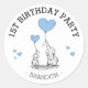 Pegatina Redonda Elefantes y corazones azules | Niño 1º cumpleaños