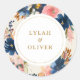 Flores de acuarela fresca y elegante con un azul marino vibrante y un rosa dulce de color ruidoso se acentúan con suaves dorados antiguos. Estos pegatinas redondos personalizados fueron diseñados para coincidir con nuestra colección de invitaciones a bodas de la Marina Wild Elegance, Rubor y Gold.