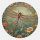 Pegatina Redonda Elegant Art Nouveau Spring green Dragonfly