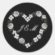 Pegatina Redonda Elegant Black and White Floral Heart Wedding