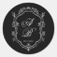 Pegatina Redonda Elegant Black Floral Crest Monogram Script Wedding