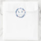 This elegant wedding sticker features a floral design with large blue roses and smaller red flowers, creating a lush, intricate tapestry. The central circular border highlights bold navy initials "L" and "B," accompanied by the phrase "THANK YOU" in a classic serif font, conveying gratitude and sophistication. The harmonious color palette of deep blues, vibrant reds, and lush greens enhances the naturalistic representation style, making it perfect for adding a touch of elegance to your special day.