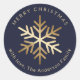 Pegatina Redonda Elegant Blue Gold Snowflake Christmas