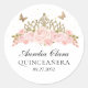 Pegatina Redonda Elegant Blush Pink Floral Gold Tiara Quinceanera