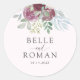 Pegatina Redonda Elegant Burgundy Rose Watercolor Wedding
