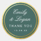 Pegatina Redonda Elegant Dark Green Gold Border Wedding