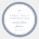 Elegant Dusty Blue Cross Boy First Communion Round Sticker.