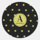 Pegatina Redonda Elegant Gold & Black Star Pattern Monogram