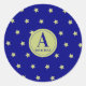 Pegatina Redonda Elegant Gold & Blue Star Pattern Monogram