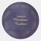 Pegatina Redonda Elegant Gold Leaves Blue Christmas Cookies