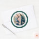 Elegant Green Plaid Photo Christmas Classic Round Sticker.