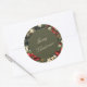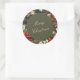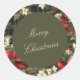 Pegatina Redonda Elegant Green Plaid Poinsettias Merry Christmas