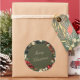 Dress up your Christmas gifts with this elegant green plaid sticker, framed in classic, festive creamy white and red poinsettias, pinecones, and holly. A timeless customizable “Merry Christmas” message makes it perfect for sealing packages, gift bags, and holiday favors with warmth and style.