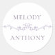 Pegatina Redonda Elegant Lavender Floral Border Monograms