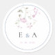 Pegatina Redonda Elegant Monogram Pink & Blue Floral Wedding