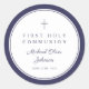 Elegant Navy Blue Cross Boy First Communion Round Sticker.