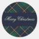 Pegatina Redonda Elegant Navy Green Plaid Christmas