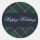 Pegatina Redonda Elegant Navy Green Plaid Holiday