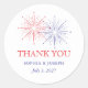 These modern and elegant wedding favor stickers are perfect for your 4th of July, Independence Day wedding. A tasteful illustration of fireworks decorates these America themed red white and blue stickers, along with classic typography that says "thank you" for a simple yet patriotic look.