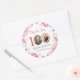 Elegant Pink Floral Photo 100th Birthday Thank You Classic Round Sticker. Immerse yourself in a delicate blend of watercolor hues, predominantly pink, and intricate floral details that form a whimsical tapestry of elegance. Elevate the personal touch with a custom photo, seamlessly weaving cherished memories into the invitation's design. This feminine masterpiece not only captures the essence of the celebrant's journey but also exudes an air of sophistication. Join us in honoring this milestone with an invitation that marries the gentle allure of pink florals, the fluidity of watercolor, and the unique charm of a custom touch, promising an unforgettable celebration of the extraordinary and the feminine.