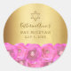 Pegatina Redonda Elegant Pink Rose Floral Gold Bat Mitzvah