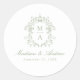 Pegatina Redonda Elegant Sage Chinoiserie Crest Monogram Wedding