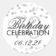 Pegatina Redonda Elegante 70° Relieve metalizado plateado Purpurina