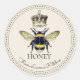 Una sencilla y elegante abeja de miel y pegatina de la etiqueta de la miel de la corona. Abeja con decorativo y tipo de guión en un fondo crema. Etiquetas de comida de miel para cocinas