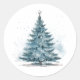 Pegatina Redonda Elegante acuarela Azul Plata Invierno Maravilla