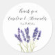 Hermosas y elegantes flores de lavanda acuarelas Pegatinas de boda. Únicas hierbas de lavanda púrpura pintadas a mano pegatinas redondos clásicos. Plantas botánicas. Arte de la naturaleza. Personalice sus nombres y la fecha del Boda.