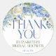 Pegatina Redonda Elegante agradecimiento floral de hortensias azule